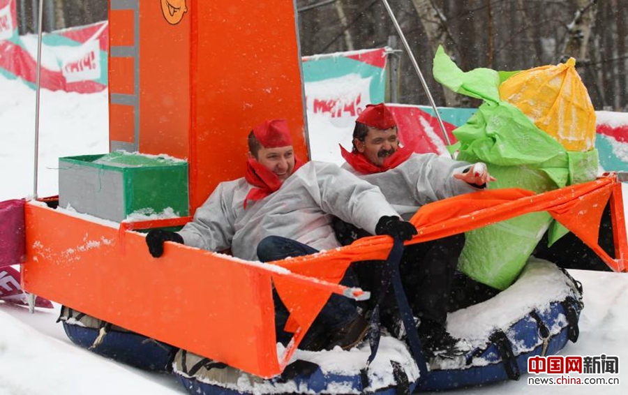 莫斯科举办别开生面的“战斗雪橇”比赛