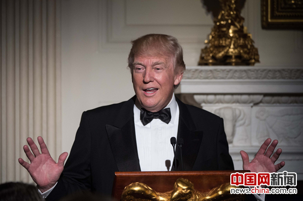 当地时间2017年2月26日,美国华盛顿,美国总统特朗普在白宫出席一年一度的全国州长协会晚宴。(NICHOLAS KAMM/视觉中国)