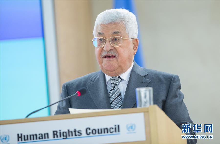 2月27日,在瑞士日内瓦万国宫,巴勒斯坦总统阿巴斯在联合国人权理事会第34次会议上致辞。