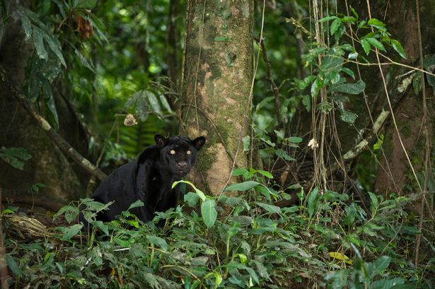 皮特和朋友乘着独木舟顺着河流往下划的时候,突然发现了一只躺在河边沙滩上的黑色美洲豹。“它距离我们130英尺(约40米)远,黄色的眼睛里好像燃烧起了一团火焰,但在看见我们之后,它却慢慢起身走远,不到30秒的时间,便消失不见了。”皮特回忆道,“于是我向乔(Joe)示意,划船寻找黑豹的踪迹。”