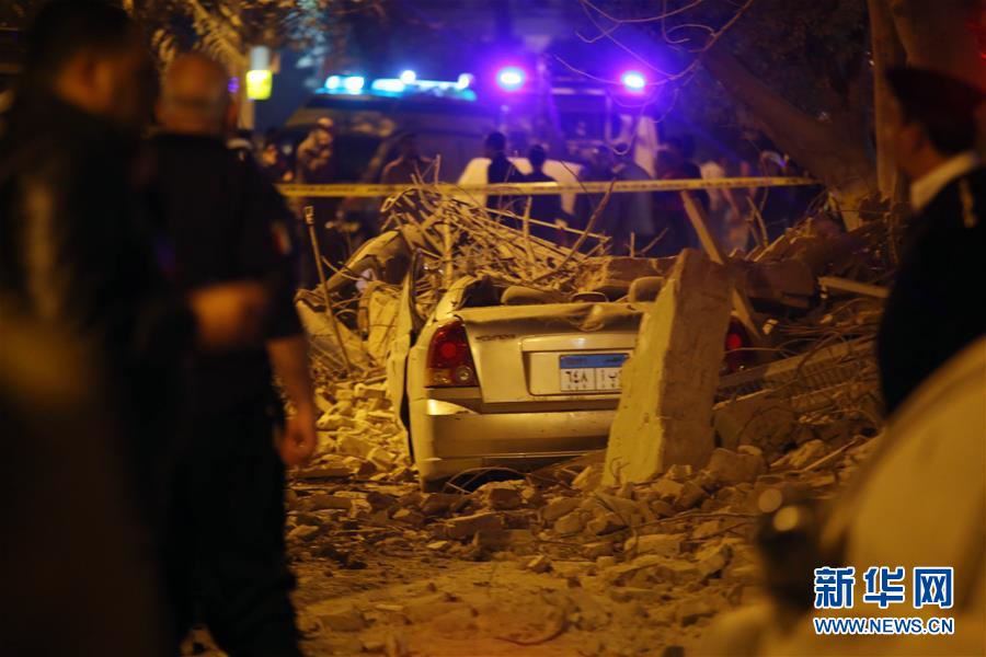 3月25日凌晨,在埃及首都开罗的楼房坍塌事故现场,一辆汽车被坠落的建筑物碎块砸毁。开罗24日晚发生楼房坍塌事故,至少造成9人受伤。新华社发(艾哈迈德·戈马 摄)