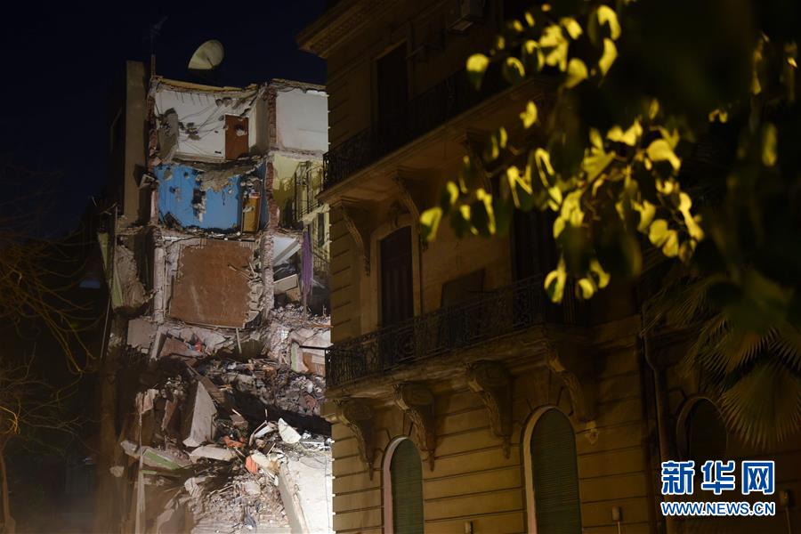 这是3月25日在埃及开罗拍摄的倒塌的楼房。开罗24日晚发生楼房坍塌事故,至少造成9人受伤。 新华社/法新
