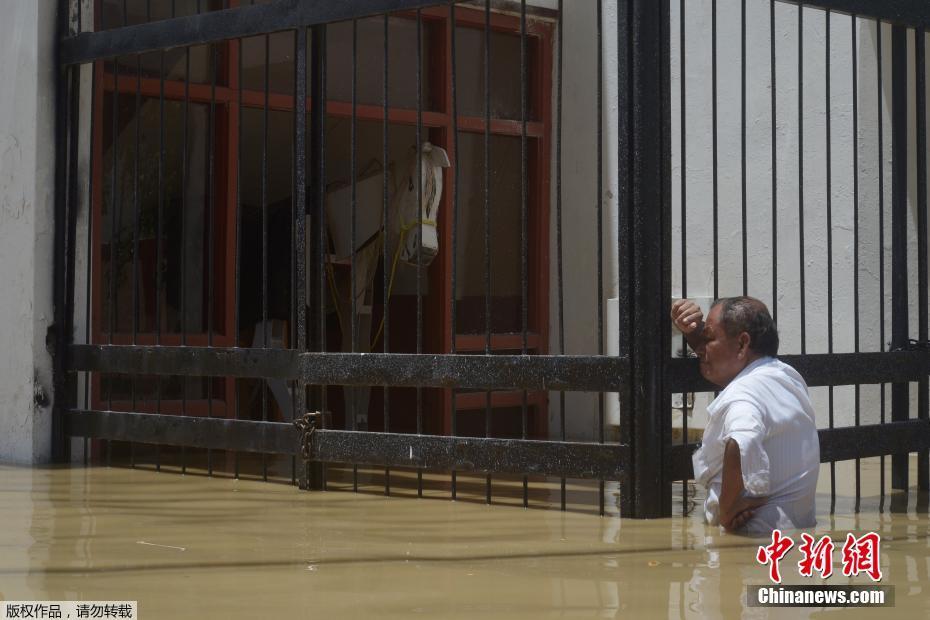 秘鲁洪水淹没街道 水深及腰民众出行艰难