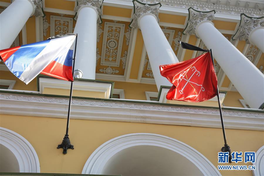 4月4日,在俄罗斯圣彼得堡,一栋建筑门前的俄罗斯国旗(左)和圣彼得堡市旗都系上黑丝带,悼念地铁爆炸遇难者。当日,俄罗斯圣彼得堡地铁爆炸案造成的死亡人数增至14人,目前还有近50人在医院接受救治。新华社发(莫京娜摄)