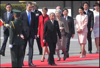 据日本共同社4月5日报道,西班牙国王菲利普六世夫妇对日本进行国事访问,5日日本皇宫举行欢迎仪式,日本天皇夫妇亲自迎接。此外,皇太子夫妇、首相安倍晋三夫妇及部分阁僚也出席了仪式。明年两国将迎来建交150周年纪念。