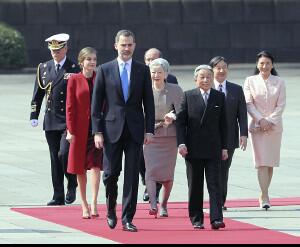 在宫殿东庭举行的欢迎仪式上演奏了西班牙国歌和《君之代》,菲利普六世检阅了陆上自卫队仪仗队。