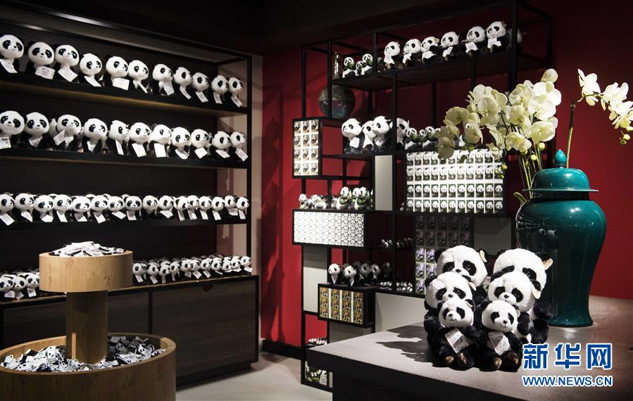 这是4月6日在荷兰雷嫩市欧维汉兹动物园熊猫馆附属商店拍摄的熊猫纪念品。新华社/欧新