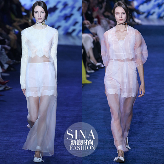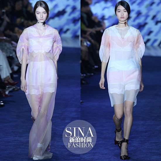 不过是被赋予了不同的厚度,厚如雪或轻如纱。从缠绵跳跃的流线间,隐约透出皮肤的粉嫩,似乎在以一种最原始的方式,向T台外的我们泄露一些足以让人心潮涌动的秘密。