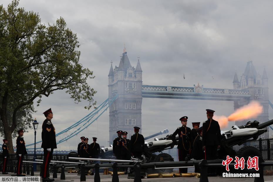 伦敦塔桥举行鸣枪礼,为英女王庆祝。