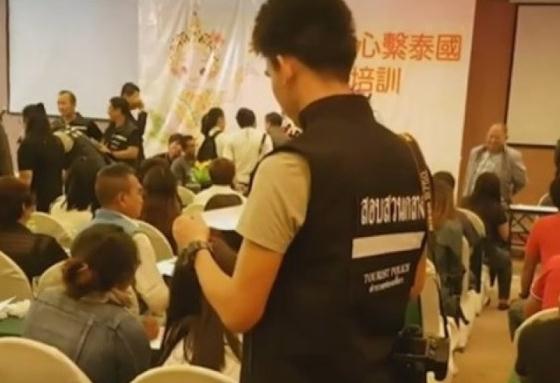 泰国旅游警察局长巴瑟警少将透露,接到举报有大批外国籍人士聚集酒店会议室,于是联合执法小组检查。现场物证显示,这其实是一场非法导游培训活动,所推销的对象以中国游客为主。部分人经调查报已获释。