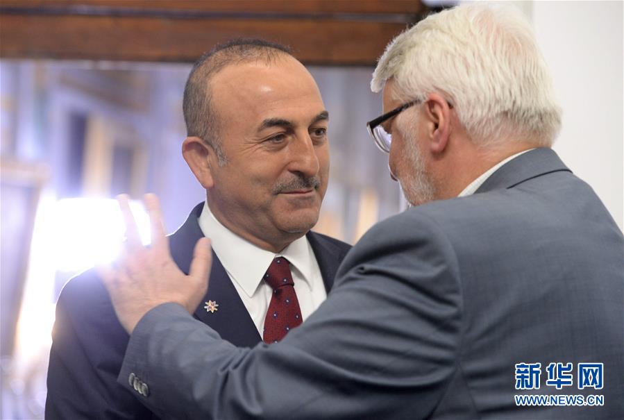 4月28日,在马耳他瓦莱塔,土耳其外长恰武什奥卢(左)参加欧盟外交部长非正式会议时与波兰外长瓦什奇科夫斯基交谈。