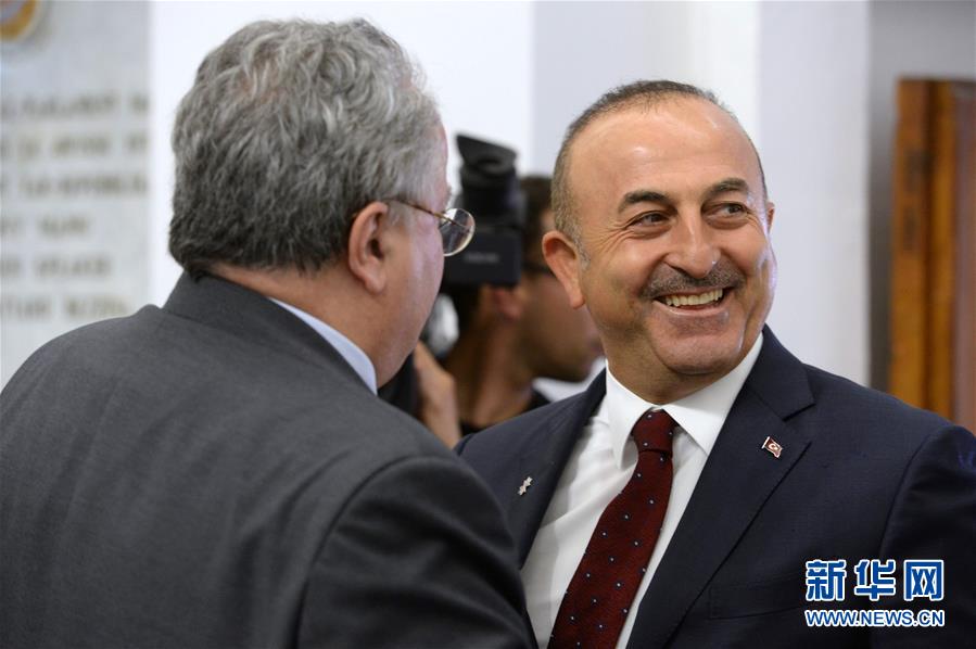 4月28日,在马耳他瓦莱塔,土耳其外长恰武什奥卢(右)抵达欧盟外交部长非正式会议现场。
