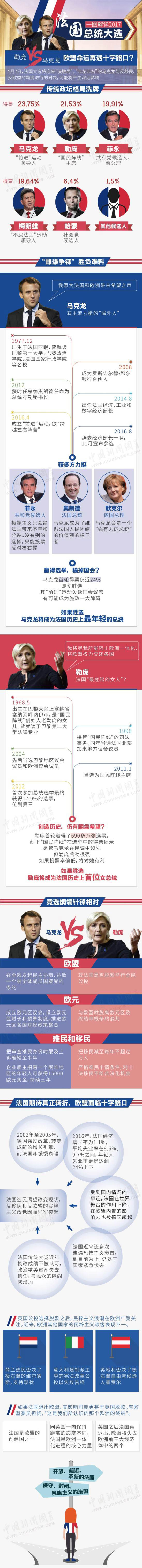 法国选民借此次大选重塑法国政治版图,而对欧盟持温和态度的马克龙与反移民、反欧盟的勒庞谁能胜出,对法国以外的世界也将产生深远影响。在英国公投选择脱欧、民粹主义浪潮席卷多国之后,法国大选将是欧盟未来的十字路口,中新网为您图解这次大选精彩内容: