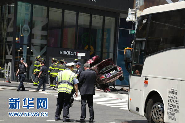 5月18日,一辆汽车在纽约时报广场冲上人行道。新华社记者杨士龙摄