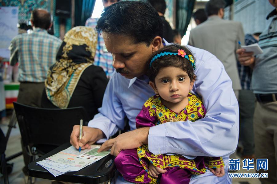 5月19日,在伊朗首都德黑兰的一处投票站,一名男子填写选票。 伊朗第12届总统选举投票于当地时间19日24时结束。新华社记者孟涛摄