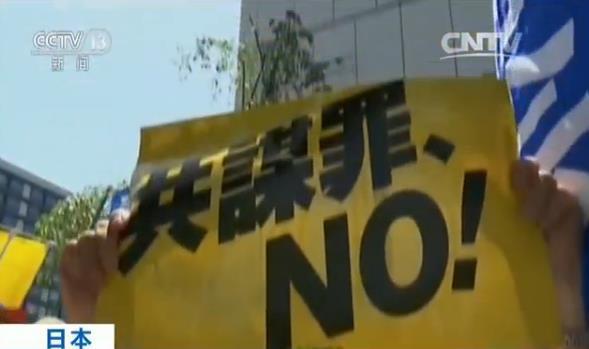 (东京)抗议民众:立即废除这份侵犯隐私的法案,强烈反对强行表决通过法案。