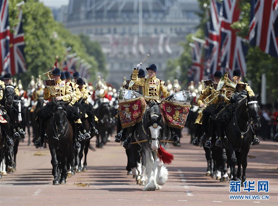 6月17日,在英国伦敦,骑兵参加英女王生日庆典活动。当日,英国伦敦举行盛大生日庆典,庆祝英女王91岁官方生日。