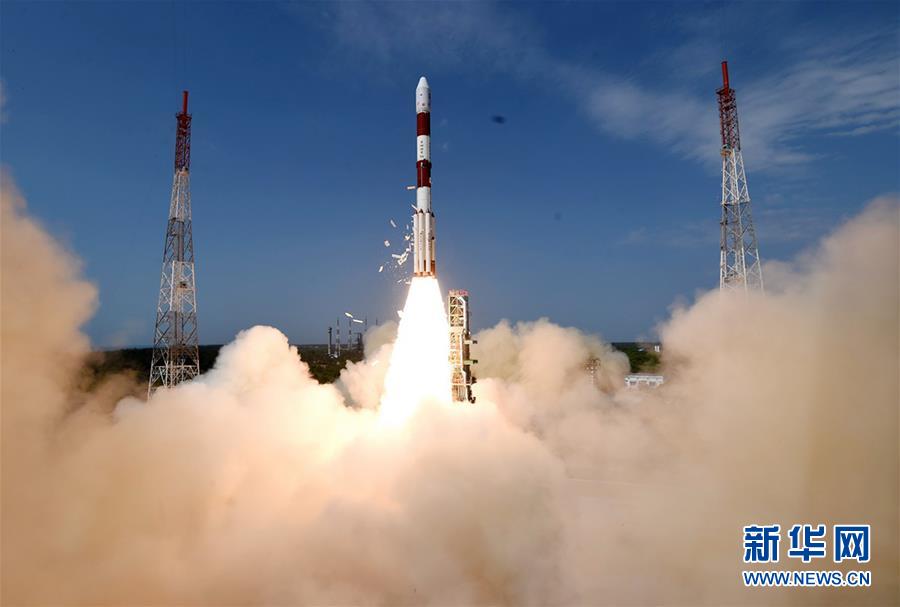 印度空间研究组织23日在印度东南部安得拉邦的萨蒂什·达万航天中心成功发射了一枚代号为“PSLV-C38”的运载火箭,把1颗地球观测卫星和30颗纳米卫星送入轨道。新华社发(印度空间研究组织供图)