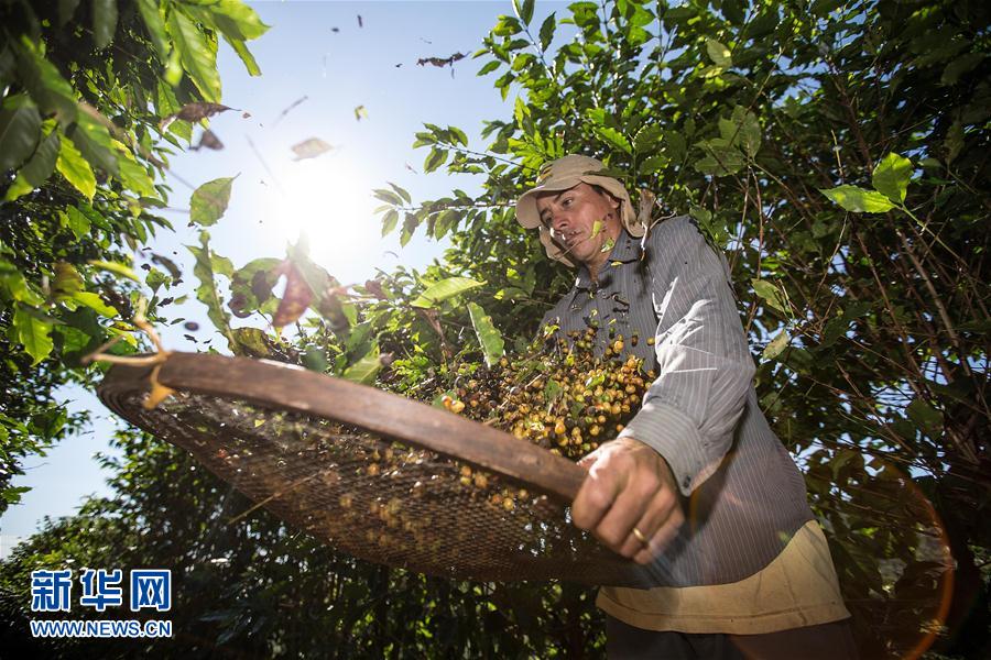 在巴西东南部米纳斯吉拉斯州以矿泉水出名的城市圣洛伦索市中心步行街有一家咖啡店宾客盈门,现代的装修和设备在老城区分外显眼。咖啡店属于当地的佩雷拉家族。店开了10年左右,但他家的咖啡却已经有上百年的历史。1890年,若泽·伊西德罗·佩雷拉和妻子纳萨雷特·迪亚斯·佩雷拉在米纳斯吉拉斯州南部山区开辟了塞尔当庄园,在这里种植咖啡、养牛。庄园里有一片咖啡田,树龄超过百年,虽然咖啡并不是年份越久远品质越高,但这片咖啡田代表了庄园的历史,这些百年咖啡树的果实在每年的咖啡博览会上销量依然很好。现在塞尔当庄园的咖啡占巴西精品咖啡产量的70%至80%。目前庄园的咖啡已经向全球35个国家出口。在位于巴西圣洛伦索的塞尔当庄园,一名工人筛出咖啡果实中掺杂的叶子(6月19日摄)。新华社记者李明摄