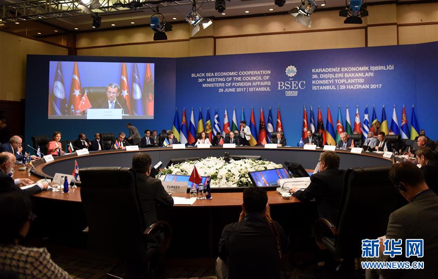 这是6月29日在土耳其伊斯坦布尔拍摄的黑海经济合作组织会议开幕式。黑海经济合作组织29日在土耳其伊斯坦布尔举行会议,讨论加强该组织合作的途径,以更好应对地区安全挑战。新华社记者 贺灿铃 摄