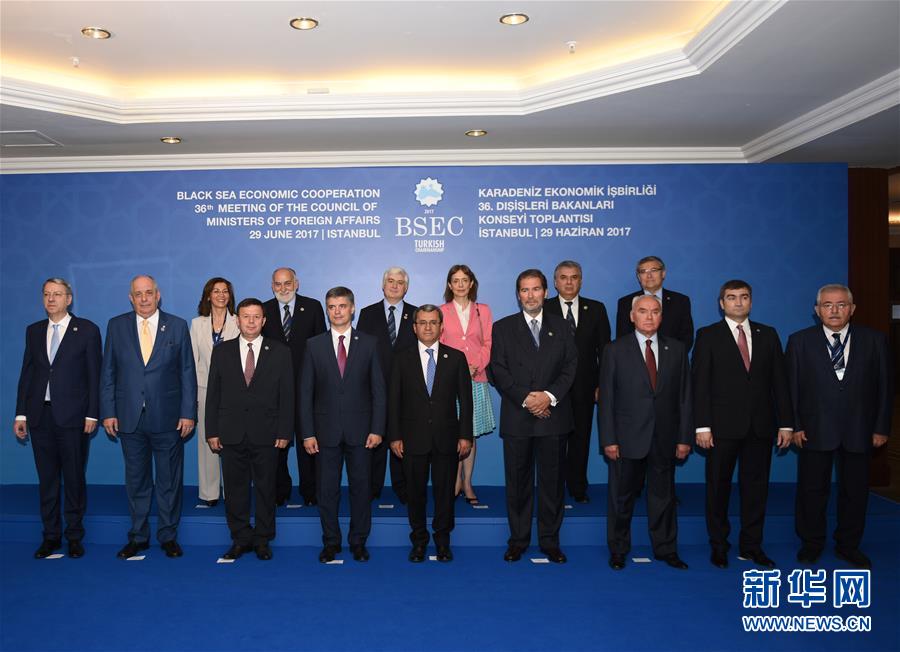 6月29日,在土耳其伊斯坦布尔,与会嘉宾在黑海经济合作组织会议上合影。黑海经济合作组织29日在土耳其伊斯坦布尔举行会议,讨论加强该组织合作的途径,以更好应对地区安全挑战。新华社记者 贺灿铃 摄