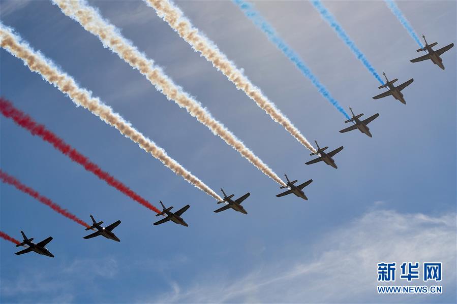 7月14日,在法国巴黎举行的国庆阅兵仪式上,“法兰西巡逻兵”飞行表演队拉出法国国旗红白蓝三色彩烟。