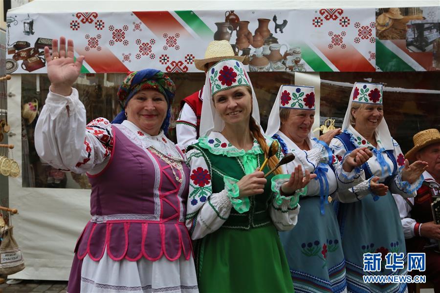 这是7月15日在白俄罗斯维捷布斯克市拍摄的身着民族服装的妇女。第26届“斯拉夫巴扎”国际艺术节13日晚在白俄罗斯维捷布斯克市开幕,为期5天的艺术节将举办歌舞比赛、民族手工艺品展等精彩文艺活动。新华社记者魏忠杰摄
