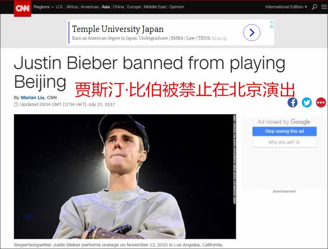 外媒的标题大同小异,贾斯汀·比伯被禁止在北京演出。