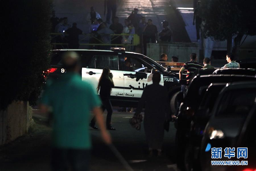 7月23日,约旦安全人员在位于首都安曼的以色列驻约旦大使馆附近警戒。据约旦《明日报》报道,以色列驻约旦大使馆23日发生持械伤人事件,导致一人受伤,袭击者被打死。新华社发(穆罕默德·阿布·古什摄)