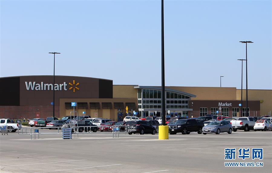 这是7月23日在美国得克萨斯州圣安东尼奥拍摄的一家涉事的沃尔玛超市停车场。美国得克萨斯州圣安东尼奥市医院23日证实,当天从一辆涉嫌人口贩运的货车内解救的多人中,至少17人情况危急,包括两名15岁未成年人。当天早些时候,警方在沃尔玛超市停车场发现一辆可疑货车,随后在车内找到8具尸体并解救出30人,经现场身体检测,这些人严重中暑脱水。新华社发(颜博摄)