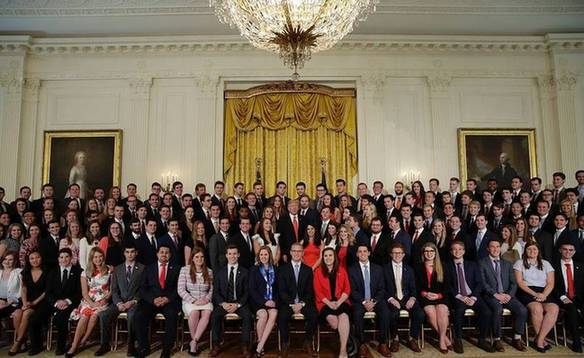 据了解,白宫每年都会招募3批实习生,分别是春季、夏季和秋季。曾有资料显示,每年有300人前来白宫实习,不过曾是白宫实习生的赵小兰介绍过,她当年在白宫实习时只有13位实习生。政知道(微信ID:upolitics)数了下,大概150名左右的实习生出现在此次和特朗普的合照中。