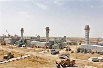 中国石油工程建设有限公司承建的伊拉克鲁迈拉油田早期电站项目正在建设中,项目建成并入国家电网后,每年可满足超过100万家庭的用电需求。图为电站项目施工现场。本报记者 韩晓明摄