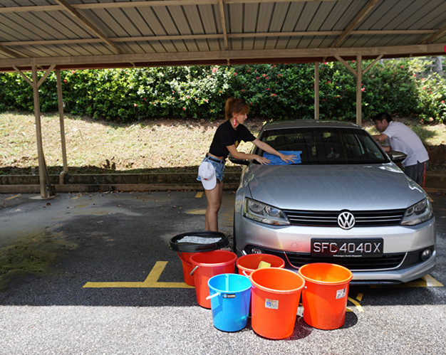 新加坡美姐穿热裤洗车做慈善