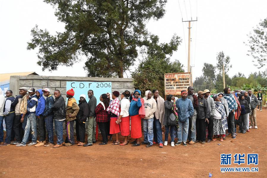 8月8日,在肯尼亚内罗毕,选民们在一处投票点排队投票。肯尼亚大选投票于当地时间8日6时(北京时间8日11时)正式开始。近2000万登记选民将在全国4万多个投票站投票,选出肯尼亚新一任总统。新华社记者陈诚摄