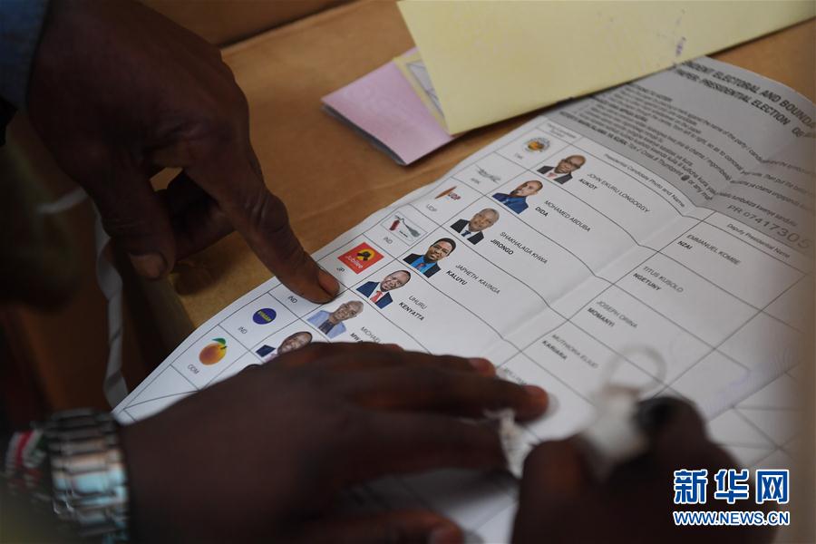 8月8日,在肯尼亚内罗毕一处投票点,选民查看候选人名单。肯尼亚大选投票于当地时间8日6时(北京时间8日11时)正式开始。近2000万登记选民将在全国4万多个投票站投票,选出肯尼亚新一任总统。新华社记者陈诚摄