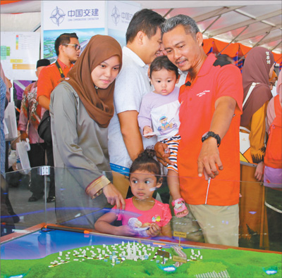 听闻东海岸铁路项目开工的消息,9日上午,许多彭亨州当地居民身着节日里的喜庆服装,扶老携幼赶来参加仪式,能容纳5000人的现场被挤得满满当当。在开工仪式特别设置的展示区,他们在铁路信息介绍展板和模拟线路沙盘旁驻足观看、拍照留念,喜悦之情溢于言表。