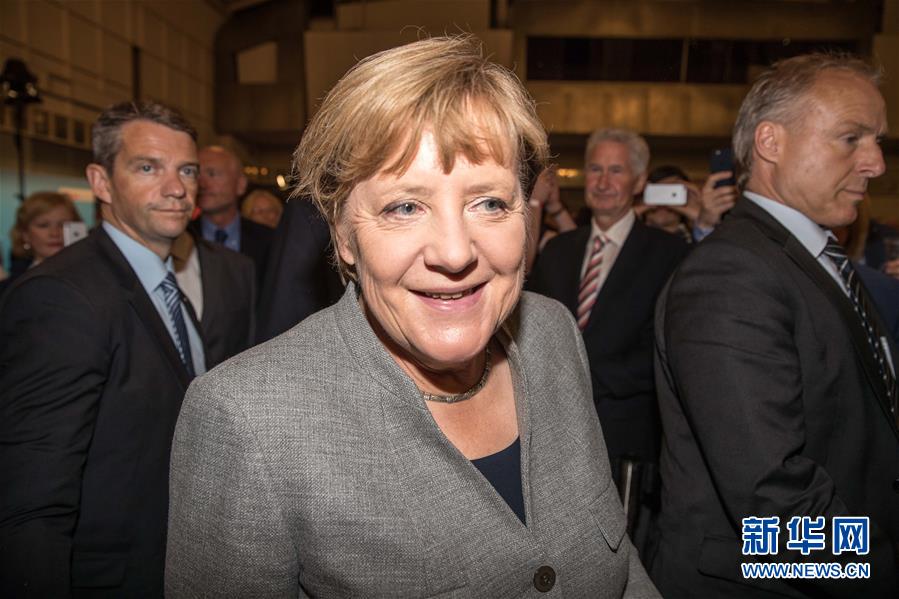 8月12日,在德国多特蒙德,德国总理默克尔离开竞选集会现场。德国总理默克尔领导的基督教民主联盟(基民盟)12日在多特蒙德举行竞选集会,为即将于9月24日举行的联邦议会选举造势。新华社发(约阿希姆·毕瓦勒兹摄)
