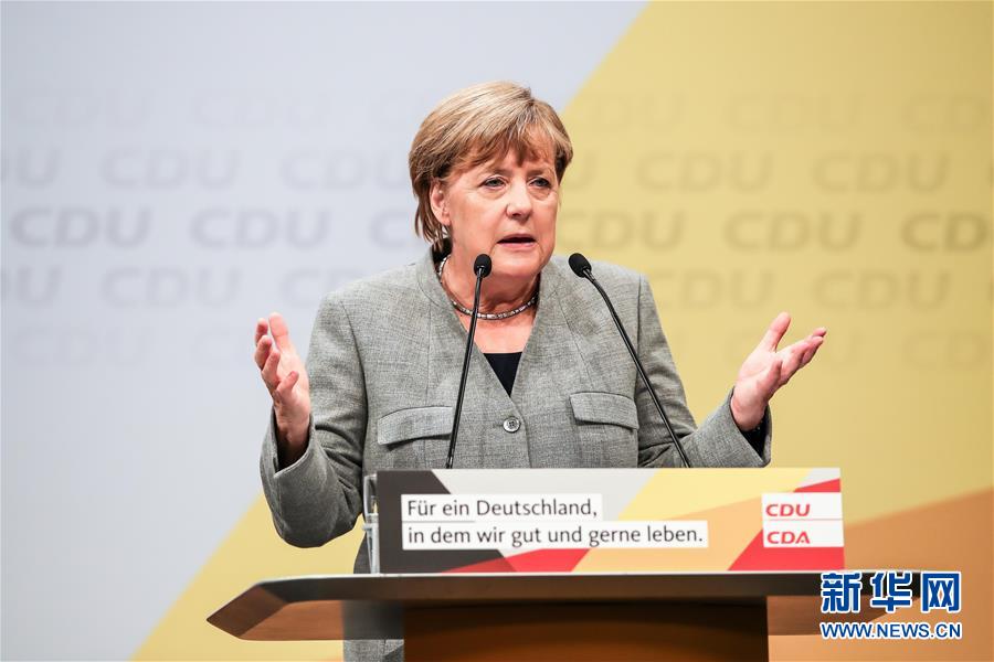 8月12日,在德国多特蒙德,德国总理默克尔在竞选集会上讲话。德国总理默克尔领导的基督教民主联盟(基民盟)12日在多特蒙德举行竞选集会,为即将于9月24日举行的联邦议会选举造势。新华社发(约阿希姆·毕瓦勒兹摄)