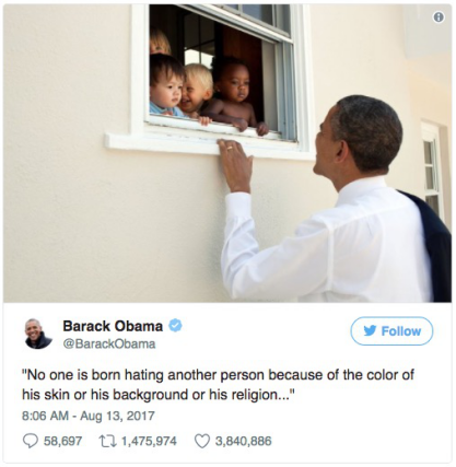 美国前总统奥巴马就此发表推文,引述反对种族隔离的前南非总统曼德拉的名言:“没有人生来就仇恨他人,无论是因为对方的肤色、背景,还是所信仰的宗教。”