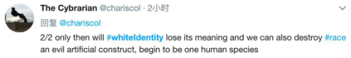 故此,就如推特网友@TheCybarian所说:只有当白人身份认同这一概念失去意义的时候,我们才能打破万恶的种族歧视成为真正的人类。