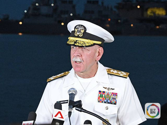8月22日,美国太平洋舰队司令斯科特·斯威夫特在新加坡樟宜海军基地举行的新闻会上发表讲话。(新华社发)