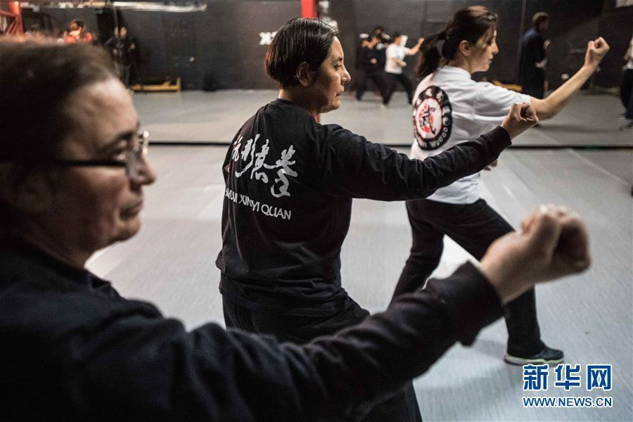 8月24日,在智利首都圣地亚哥“龙魂武道”武馆,阿诺·博赛兰的学员们练习形意拳。新华社发 豪尔赫 摄 图片来源:新华网