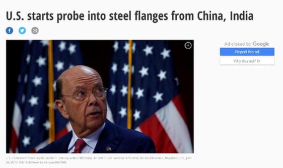 这一调查行动是根据美国两家私人公司提出的诉状展开的,它们是伊利诺伊州的Core Pipe Products Inc和得克萨斯州的Maass Flange Corp。
