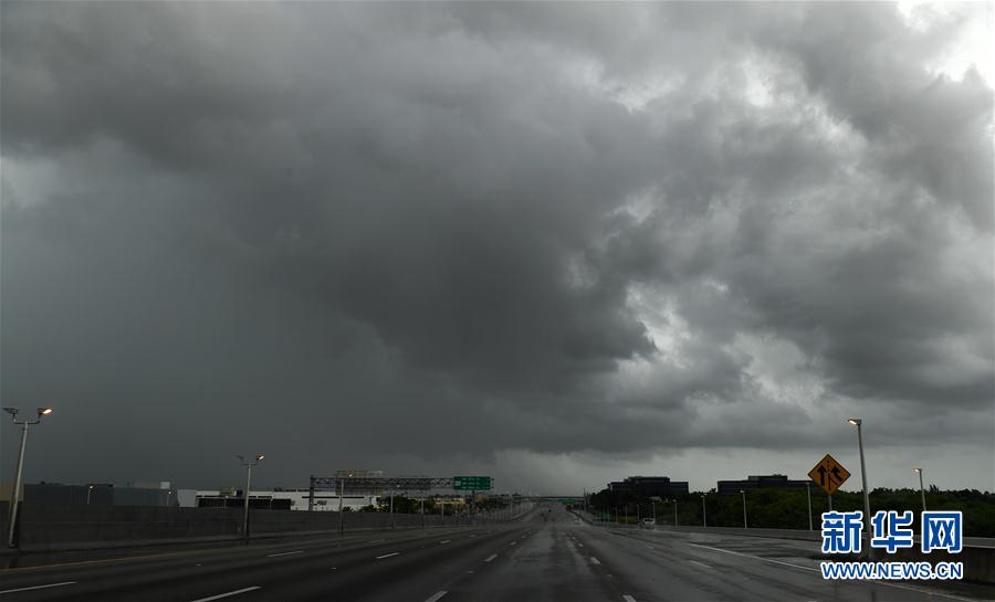9月9日,美国佛罗里达州迈阿密一条公路上空乌云密布。