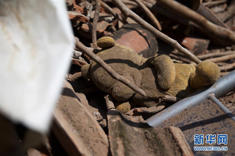 9月9日,在墨西哥瓦哈卡州胡奇坦市,亚伯拉罕小儿子马西利亚诺的玩具熊遗落在房间废墟里。新华社记者淡航 摄