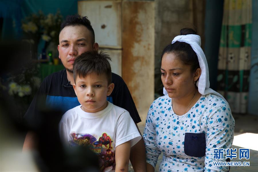 9月9日,在墨西哥瓦哈卡州胡奇坦市,亚伯拉罕搂着幸存的大儿子路易斯坐在妻子瓦列里娅身边。新华社记者淡航 摄