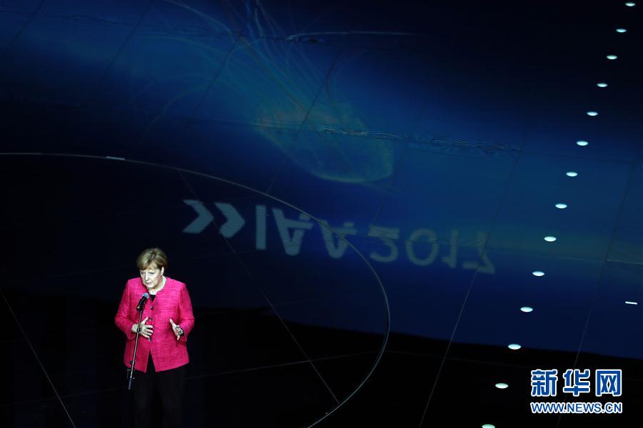 9月14日,德国总理默克尔在第67届法兰克福国际车展开幕式上讲话。新华社记者 罗欢欢 摄