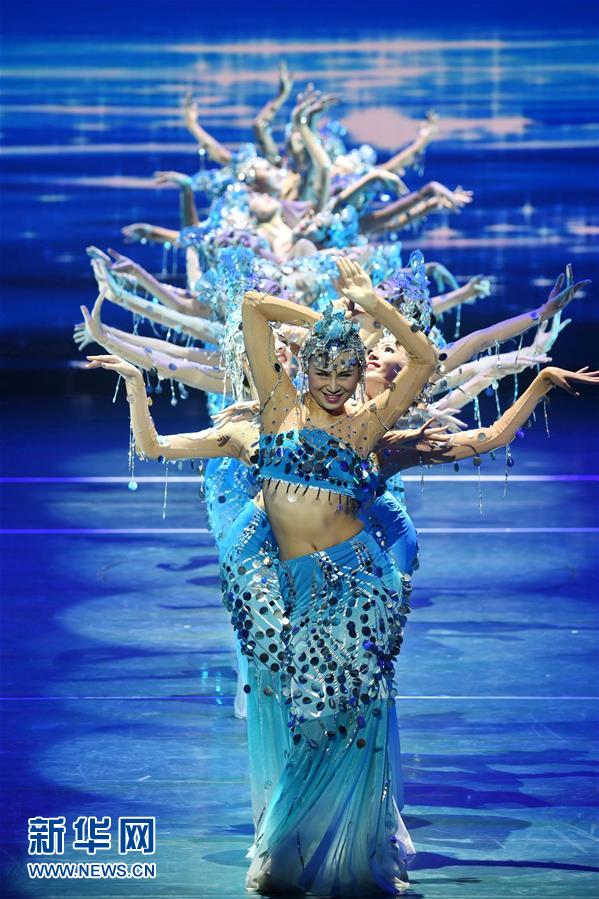 9月18日,中国歌剧舞剧院演员在表演《水之灵》。当日,金砖国家民族舞晚会在厦门举行,来自金砖五国的演员为观众献上精彩的舞蹈。 新华社记者 林善传 摄