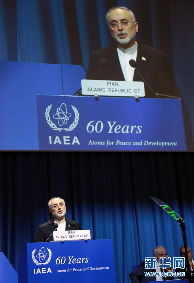 9月18日,在奥地利维也纳,伊朗原子能组织主席萨利希在国际原子能机构第61届大会上发言。