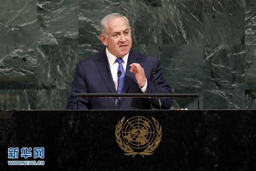 9月19日,在纽约联合国总部,以色列总理内塔尼亚胡在联大一般性辩论上发言。第72届联合国大会一般性辩论19日在纽约联合国总部开始举行。新华社记者 李木子 摄